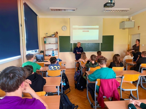 Aspirant Katarzyna Kurkowska spotkała się z uczniami Szkoły Podstawowej nr 4 w Skierniewicach, aby porozmawiać o zagrożeniach związanych z hejtem i mową nienawiści oraz odpowiedzialności prawnej za takie zachowania. To bardzo ważny temat, o którym warto rozmawiać i uświadamiać młodzież w związku z konsekwencjami tych czynów.