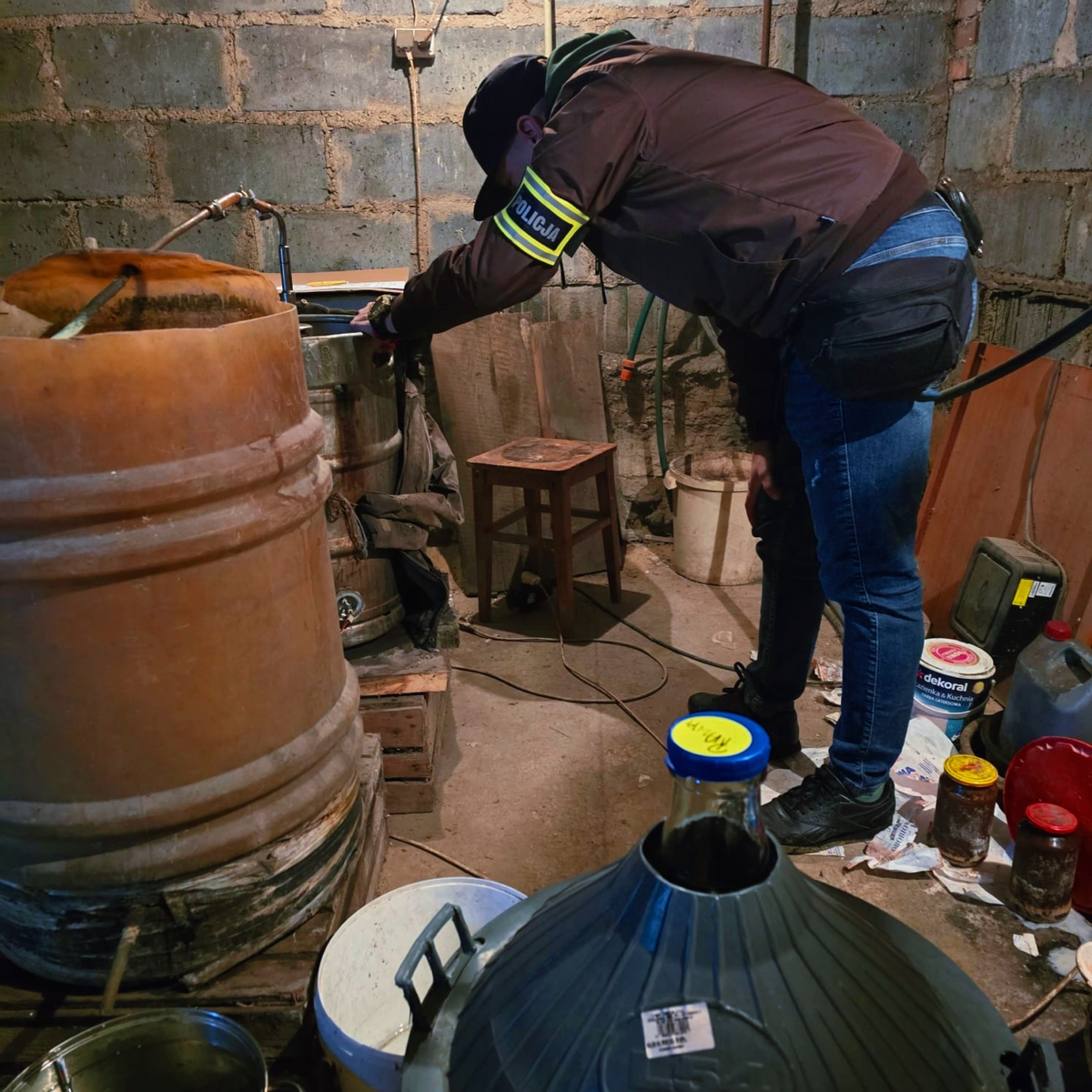 Funkcjonariusze, działając na podstawie posiadanych informacji, dokonali przeszukania jednego z domów mieszkalnych. W pomieszczeniach ujawniono i zabezpieczono urządzenia służące do produkcji alkoholu w postaci tzw. bimbru. W momencie wejścia policjantów aparatura była uruchomiona i znajdowała się w trakcie pracy.