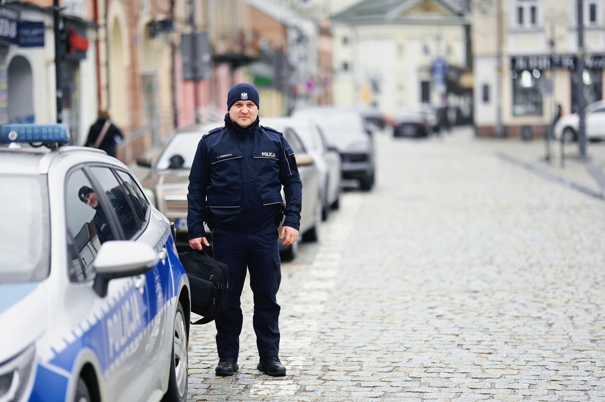 Pierwszym prezentowanym funkcjonariuszem jest starszy sierżant Adrian Kobierecki – pełniący służbę jako dzielnicowy w rejonie nr 1.