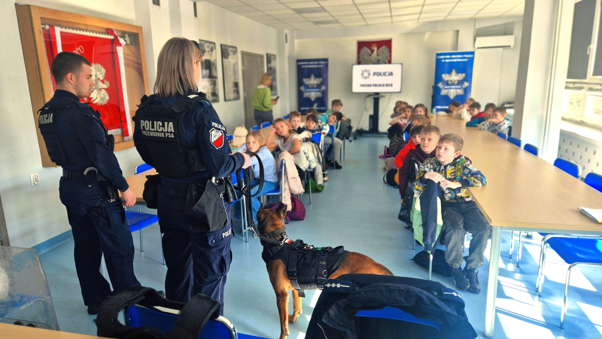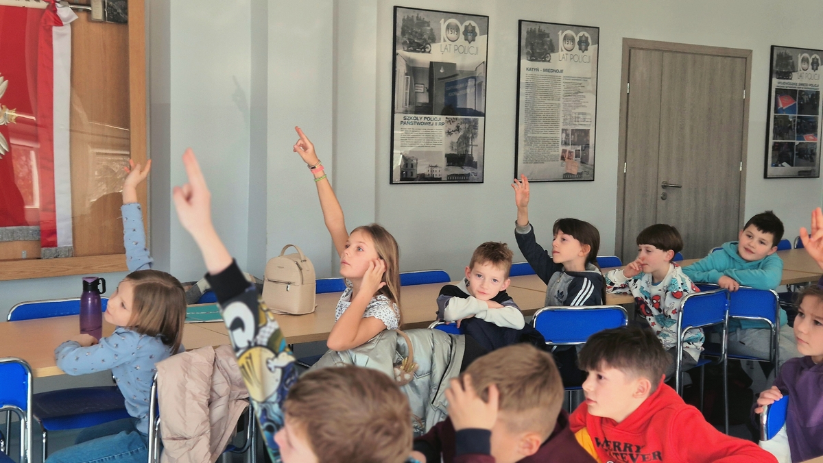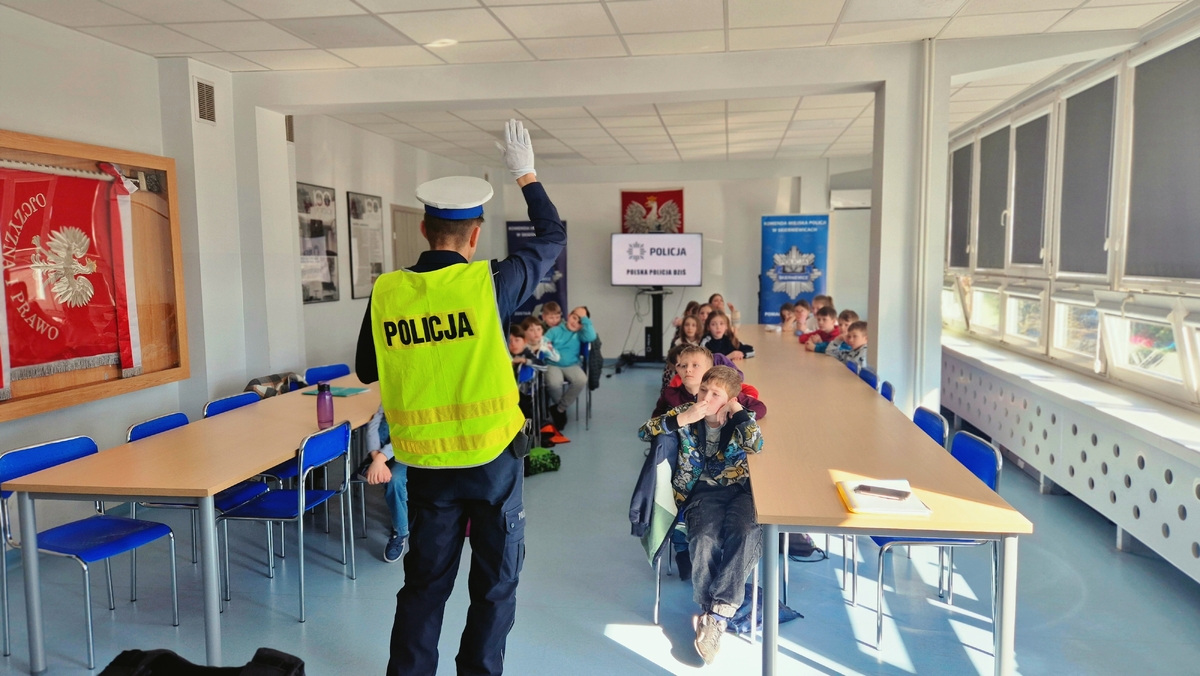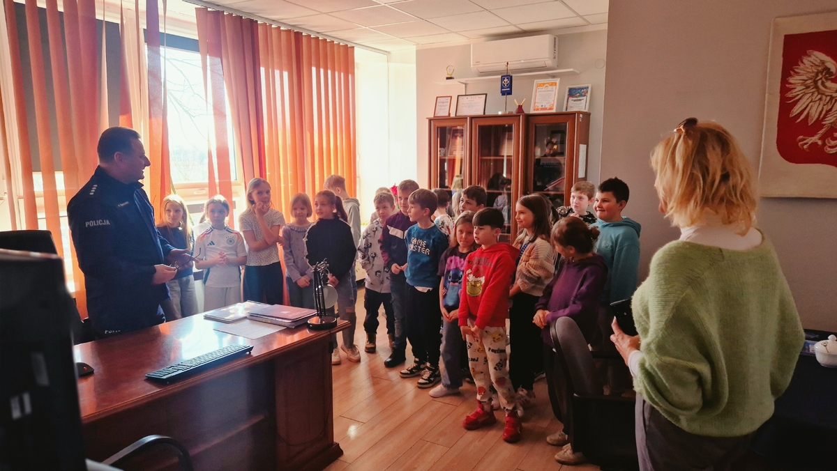 9 marca 2026 roku Komendę Miejską Policji w Skierniewicach odwiedzili uczniowie Szkoły Podstawowej nr 5 w Skierniewicach. Dzieci zdobyły I miejsce w kategorii „Super Kibice” podczas Policyjnej Akademii Bezpieczeństwa, która odbyła się w styczniu tego roku. W nagrodę za ich zaangażowanie oraz aktywne wsparcie uczestników wydarzenia Komendant Miejski Policji w Skierniewicach zaprosił uczniów do siedziby jednostki, aby mogli bliżej poznać codzienną służbę policjantów. Podczas spotkania uczniowie mieli okazję zwiedzić skierniewicką komendę. Zobaczyli między innymi gabinet komendanta, a także miejsce pracy dyżurnych jednostki – stanowisko kierowania, gdzie przyjmowane są zgłoszenia i koordynowane działania policjantów w terenie. Dzieci poznały również dyżurnych pełniących służbę.