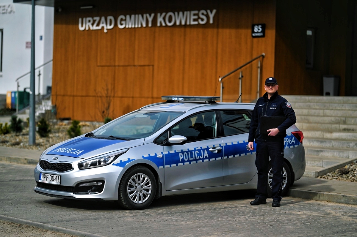 Kolejnym prezentowanym funkcjonariuszem jest mł. asp. Artur Gadzinowski – pełniący służbę jako dzielnicowy w rejonie nr 15 w Gminie Kowiesy.