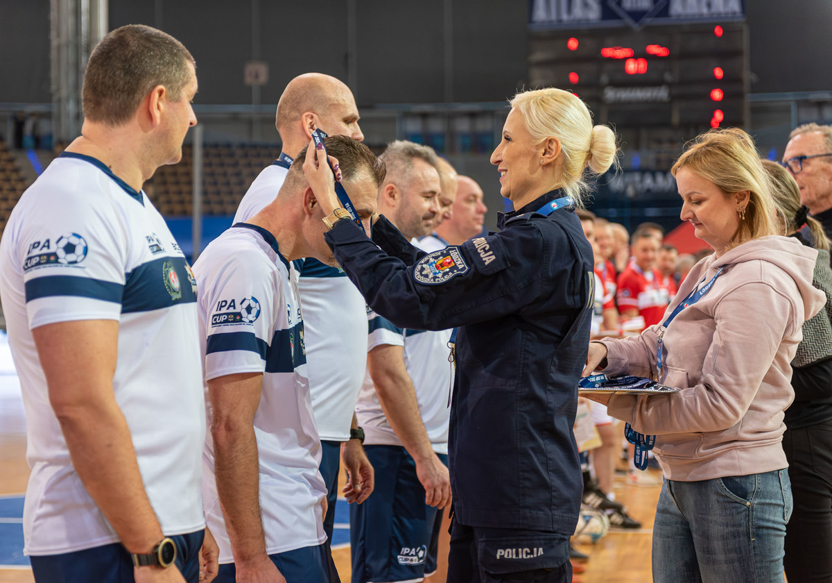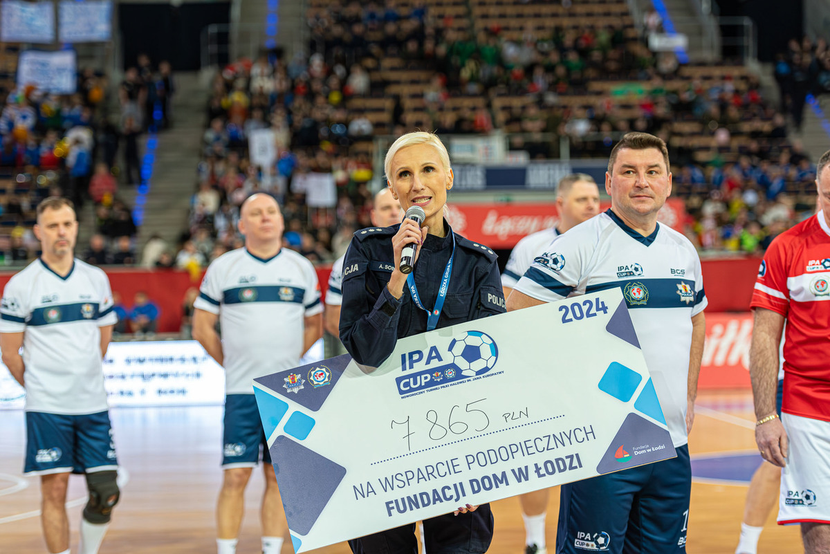 Charytatywny turniej zorganizowany przez Komendę Wojewódzką Policji w Łodzi oraz Łódzką Grupę Wojewódzką Międzynarodowego Stowarzyszenia Policji odbył się 11 stycznia 2024 roku na terenie łódzkiej Atlas Areny. Piłkarskie rywalizacje o miejsce ,,na pudle” zainaugurował mecz pomiędzy drużyną IPA KWP w Łodzi a 6. Batalionem z Gliwic. Zaangażowanie towarzyszące zawodnikom obu drużyn kilka razy przechylało szalę zwycięstwa raz na jedną, to na drugą stronę, by zakończyć się remisem 1:1. Piłkarskie zmagania zagrzały do sportowej walki reprezentantów kolejnych 10 drużyn turniejowych. Działo się! Kibicujące zespoły ze szkół podstawowych i placówek oświatowych ponadpodstawowego szczebla z terenu województwa łódzkiego dawały z siebie wszystko by wesprzeć piłkarzy. Turniejowym spotkaniom drużyn piłkarskich towarzyszyły też inne wydarzenia. Była symulacja akcji ratunkowej wobec osoby, pod którą załamał się lód i dużo treści o bezpieczeństwie podczas zimowego wypoczynku, bo już niebawem uczniowie rozpoczną wyczekiwane z niecierpliwością ferie. Szereg profilaktycznych gier, zabaw, konkursów profilaktycznych dotyczyło bezpiecznych zachowań. Nie zabrakło policyjnych znawców zasad bezpieczeństwa – Kota Prewencjusza i Komisarza Błyska. Pokaz sprzętu jaki na co dzień wykorzystują funkcjonariusze Samodzielnego Pododdziału Kontrterrorystycznego Policji w Łodzi, policjanci prewencji omawiający zasady bezpieczeństwa, o zachowaniach zgodnych z przepisami mundurowi z Wydziału Ruchu Drogowego, policyjni profilaktycy z całego garnizonu, stoisko doborowe, pokaz taktyk i technik interwencji, to kolejne atrakcje towarzyszące rozgrywkom. W krzewieniu bezpiecznych postaw wspierały nas także inne służby i instytucje: Centrum Powiadamiania Ratunkowego w Łodzi, Wodne Ochotnicze Pogotowie Ratunkowe województwa łódzkiego, Państwowa Straż Pożarna w Łodzi, Kasa Rolniczego Ubezpieczenia Społecznego w Łodzi, Wojewódzka Stacja Ratownictwa Medycznego Łodzi, 1 Batalion Kawalerii Powietrznej w Leźnicy Wielkiej oraz Wojewódzkiego Ośrodka Ruchu Drogowego w Łodzi.